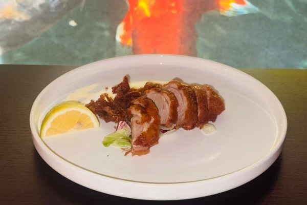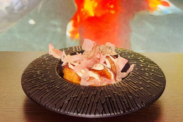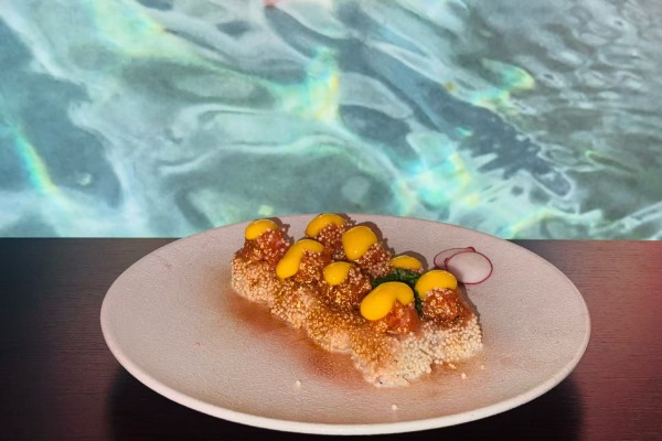 in tempura avvolto dalsalmone scottato guarnito