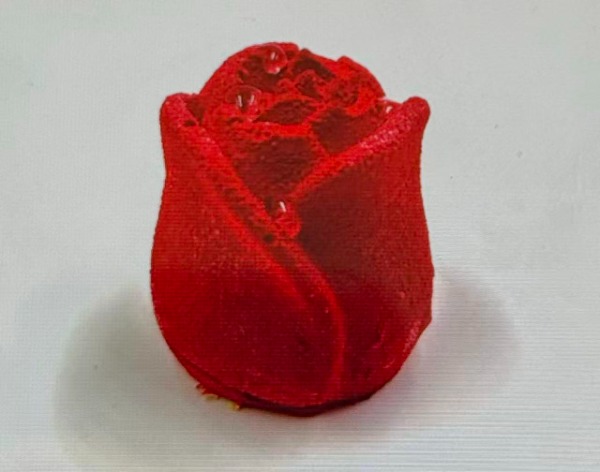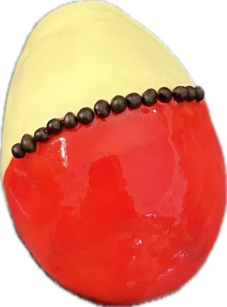 e decorazioni in burro di cacao rosso.