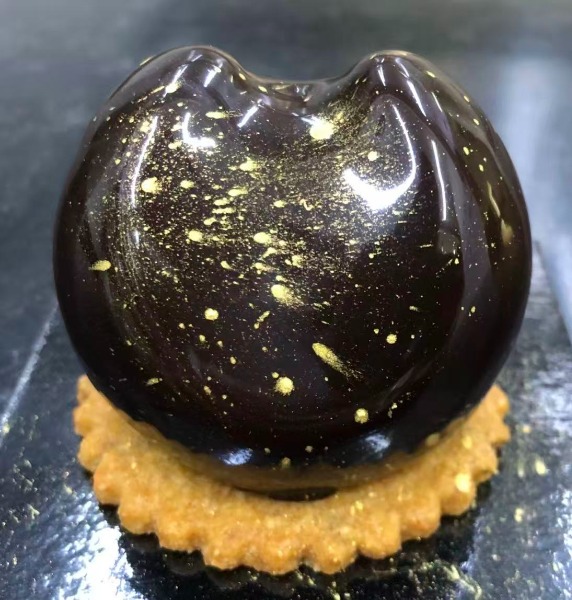 decorata con oro in polvere su una base al cacao.